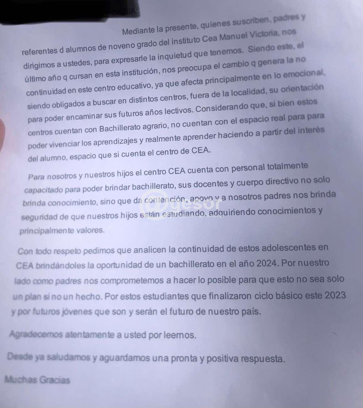 El Edil Luciano Andriolo informó: "Estuvimos en el cierre de año del CEA en la Colonia Manuel Victoria. Aprovechamos la ocasión para reunirnos con padres de los alumnos egresados quienes aspiran a que en este centro se forme un Bachillerato Agrario, en lo personal le elevamos esta inquietud a J. A. Gabito del CODICEN".