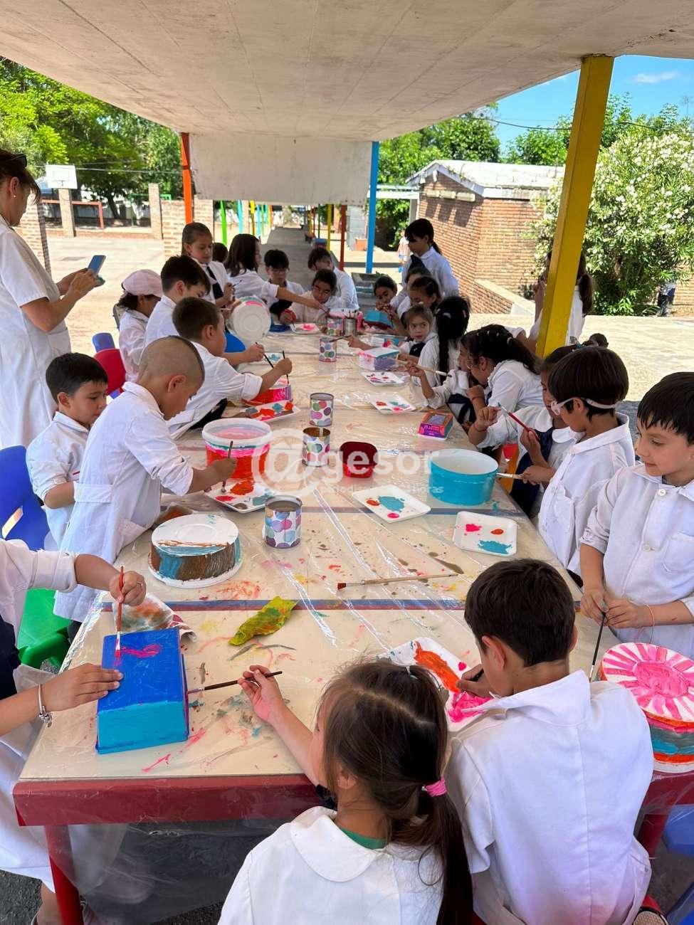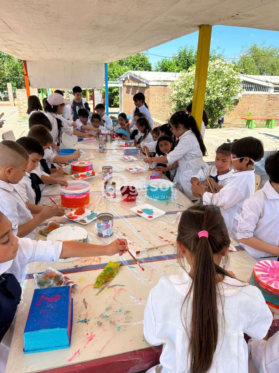 Este martes pintaron los recipientes (reutilizados), para colocar agua y comida para los perros del barrio (alrededor de la escuela).