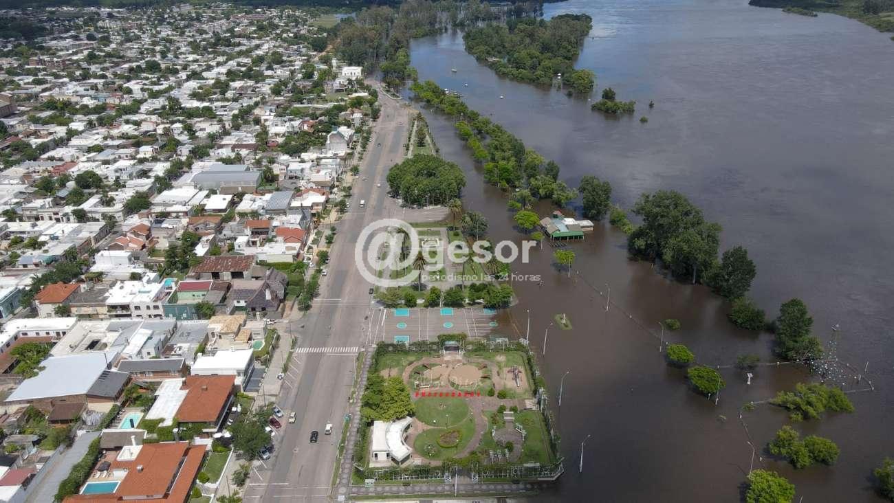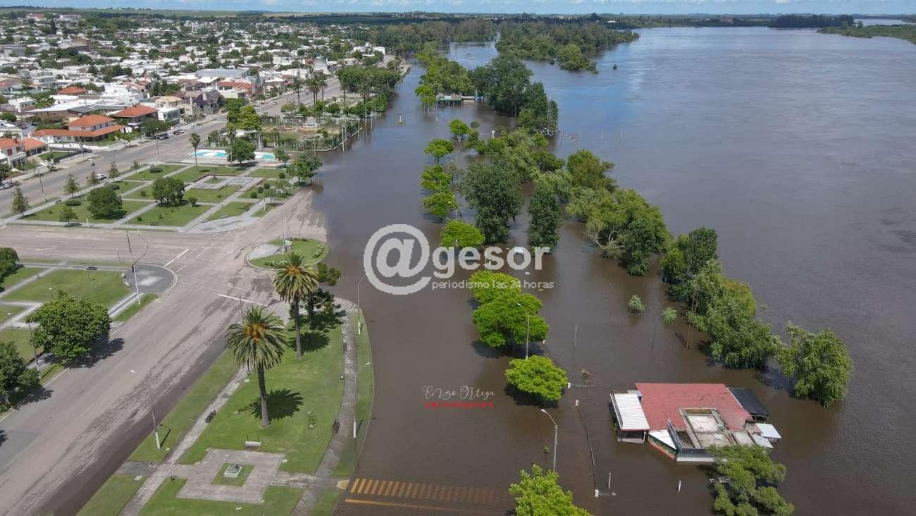 La mayor parte de la costanera de Mercedes se encuentra cubierta por las aguas del Hum, queda aun libre una zona de la rambla de la capital sorianense en los lugares más altos.