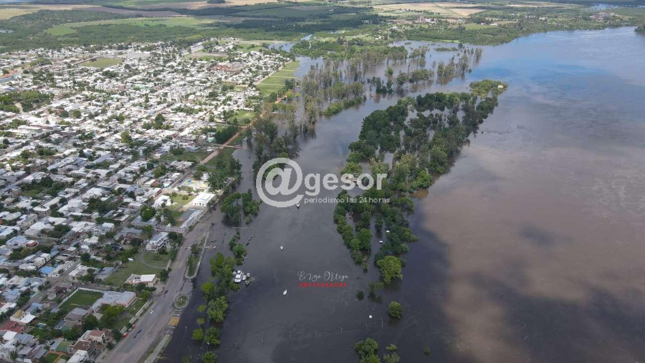 A través de las imágenes de nuestro compañero Enzo Ortega Photography puede apreciarse como se presenta este jueves al mediodía el río Negro desbordado tanto hacia el lado de la ciudad de Mercedes, como de la zona Norte, que cubre gran parte del balnario Los Arrayanes en jurisdicción del departamento de Río Negro.