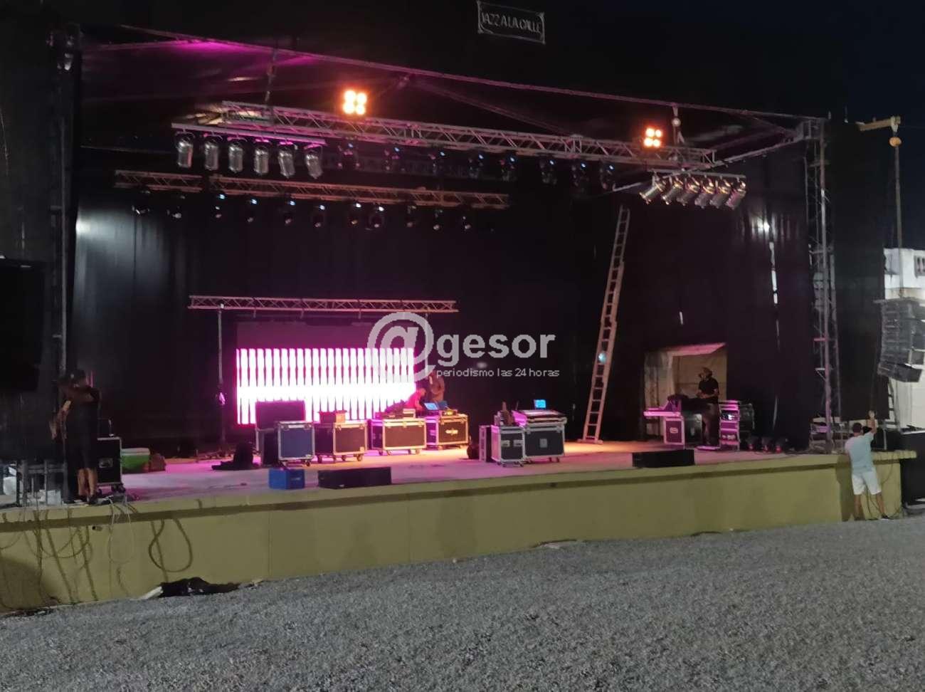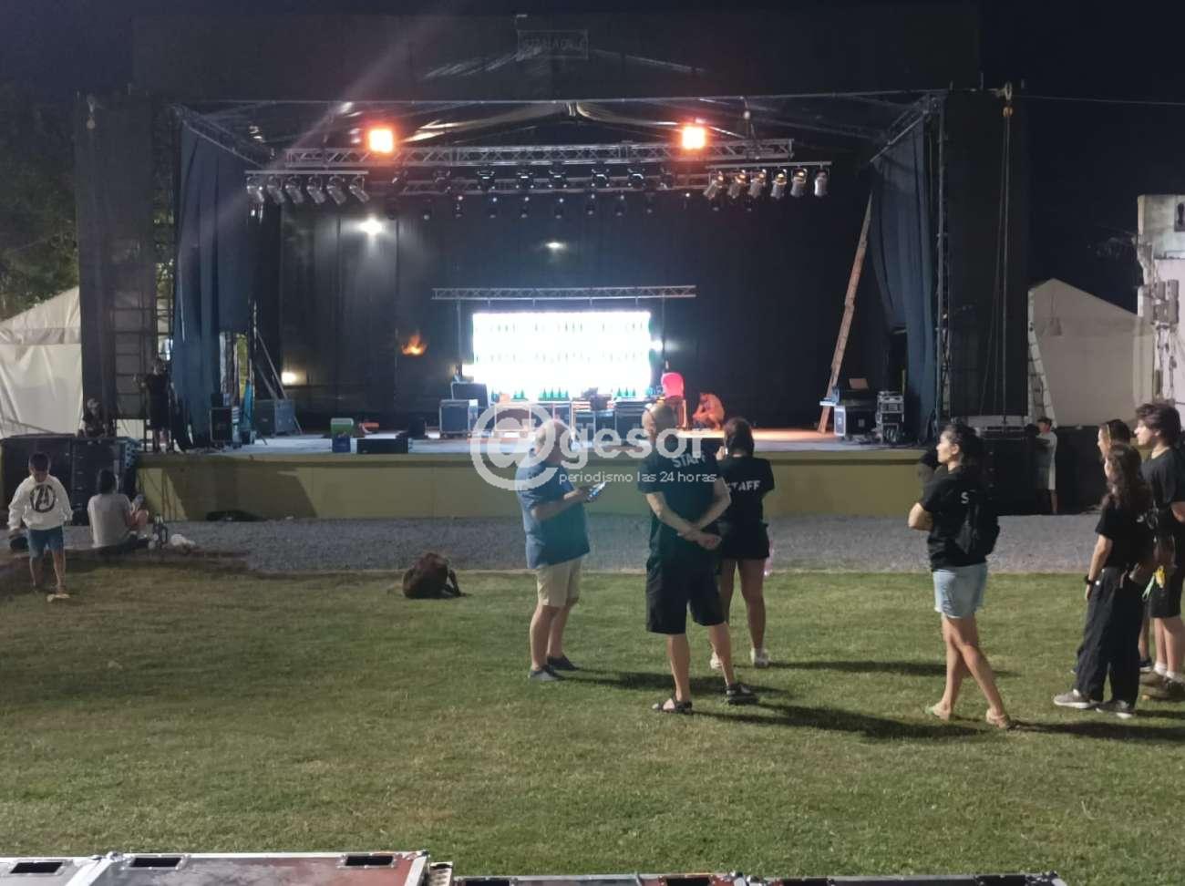 "En este caso que el escenario es al aire libre, el sonido depende exclusivamente del equipo, no depende del escenario. En cuanto a la acústica no influye porque es todo abierto a la vuelta y el techo es flexible, no genere ningún tipo de iterrupción acústica, es lo mejor que puede pasar, porque los lugares que se hacen con concha acústica como es por ejemplo el Teatro de Verano en Montevideo, tienen problemas tremendos para la amplificación, porque son escenarios diseñados en otras épocas para cuando no existían amplificaciones o no eran tan potentes o tan exquisitas o refinadas como las de ahora. En general, un escenario al aire libre, lo mejor que puede pasar, porque es lo que genera menos distorsión del sonido, te llega el sonido puro desde el parlante, en cambio, cuando entra a pegar en otros lugares se complica.