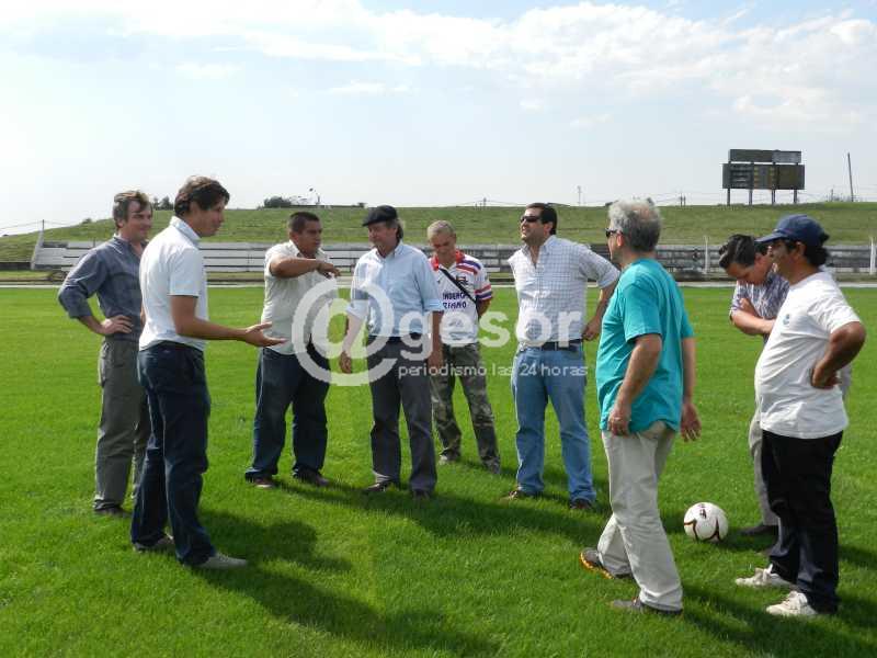 El Intendente de Soriano Guillermo Besozzi, el secretario general Dr. Germán Cavallero, el director de Deportes Javier Zarauz junto a representantes de la empresa a cargo de la instalación del sistema de riego y del sembrado del piso, estuvieron recorriendo el campo de juego.