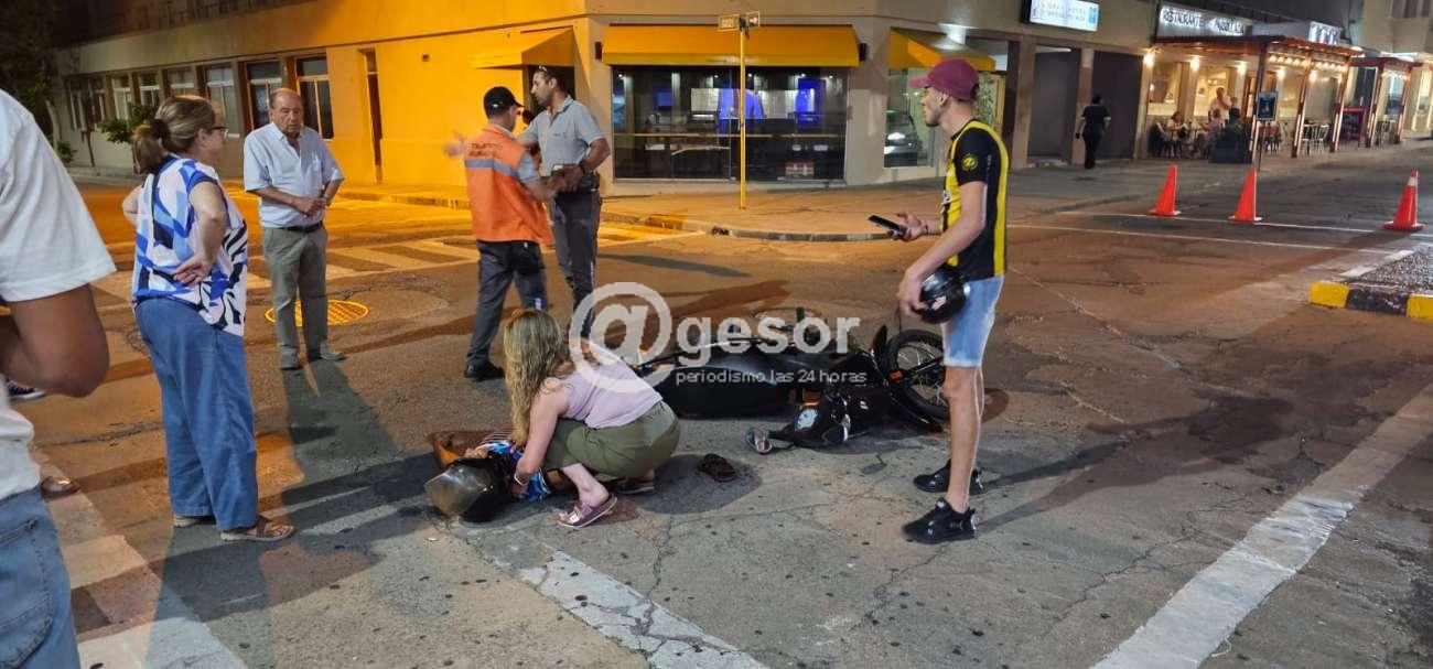 Próximo a las 21.45 de este jueves ocurrió siniestro de tránsito en la intersección de calles Giménez y Artigas en el centro de Mercedes.