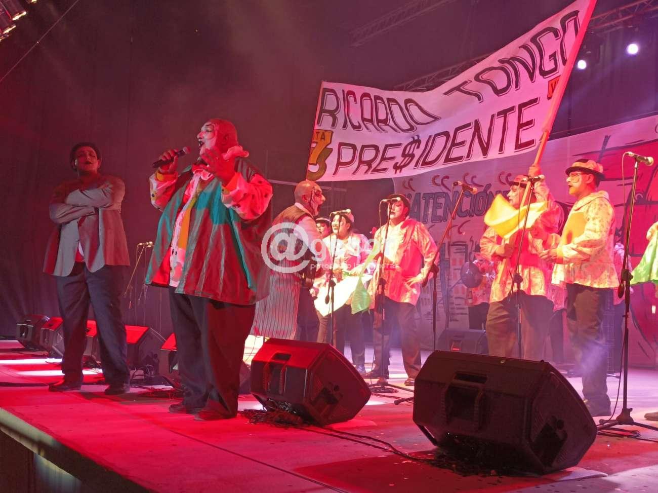 En uno de los pasajes centrales de su actuación, que tiene el regreso tras cinco años sin actuar de Eduardo Rovetta, el popular "Gordo", uno de los históricos cupleteros doloreños que tuvo sus inicios en esta murga y que luego durante años recorrió otros títulos doloreños, personaje muy querido por el público, realiza su actuación como el Presidente Ricardo Tongo y allí con sorna habla de sus propuestas pidiéndole el voto a la gente, quizás ese personaje se extiende un poco más de lo que es necesario, allí podría buscarse algún otro recurso acortando algo, porque la murga queda muchos minutos paralizada a pesar de la buena interpretación de Rovetta, que termina esa intervención demostrando que los políticos, aun aquellos que se presentan como candidato a Presidente, también tienen como recurso si pierden, la banca al Senado, cobran miles de pesos y quienes lo acompañaron quedan sin nada, y se despide diciéndoles "la próxima será", por lo que se pide la atención para que de una vez por todas, las cosa sean iguales para todos.