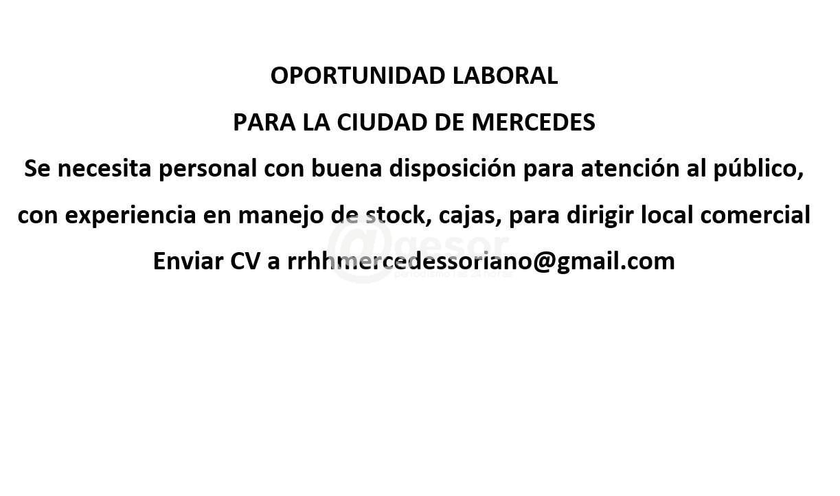Enviar CV a rrhhmercedessoriano@gmail.com