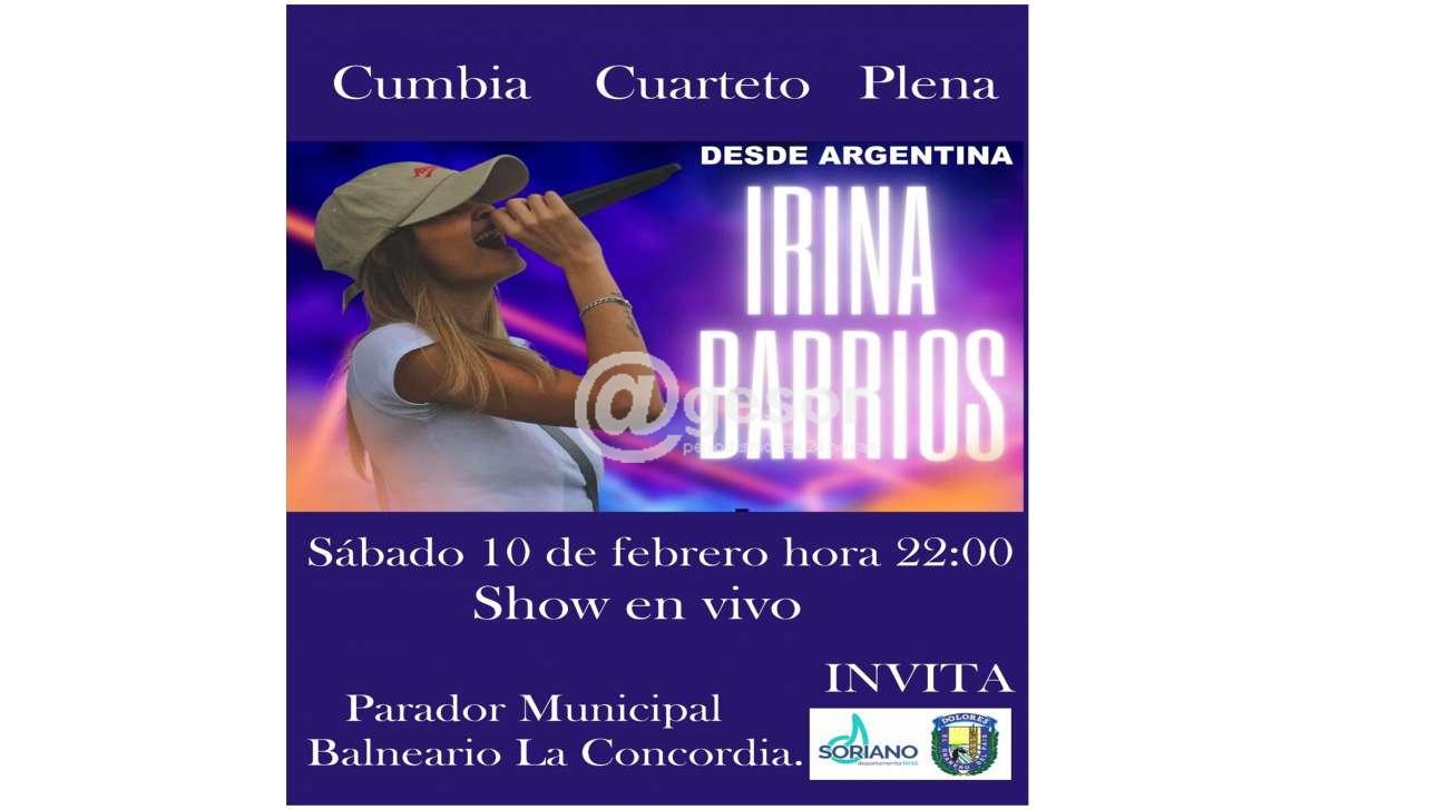 Este sábado 10 llega desde Argentina al Parador Municipal del Balneario la Concordia, Irina Barrios. Con un show en vivo de cumbia, cuarteto y plena.