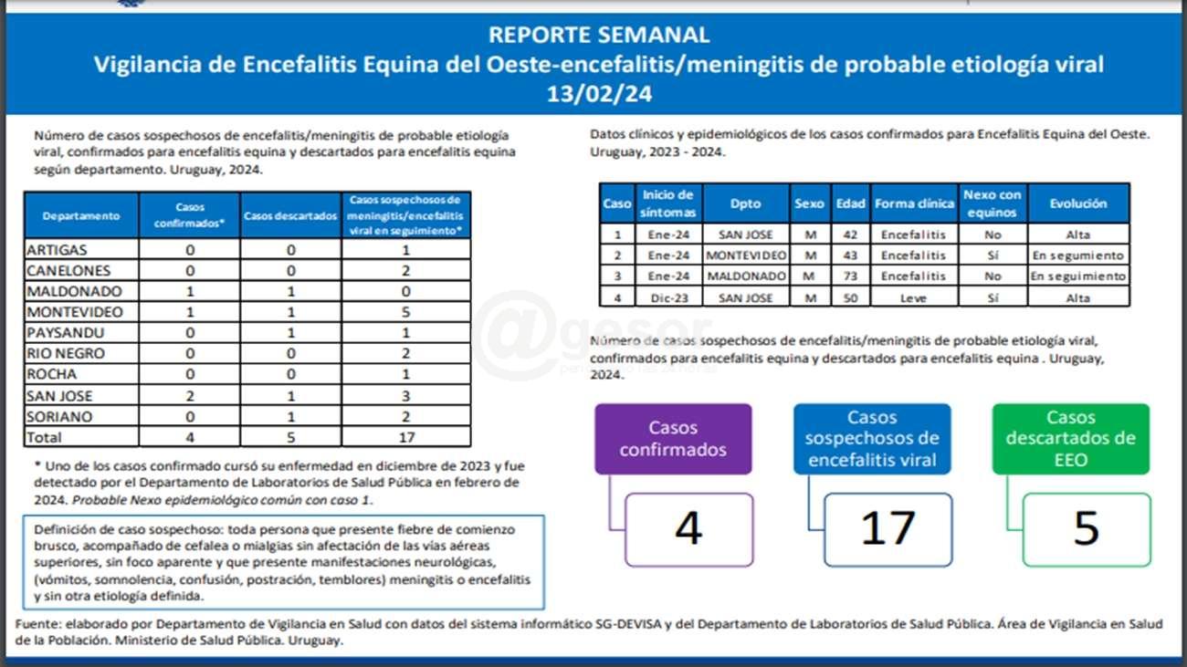 Reporte semanal sobre Encefalitis Equina - 13/2/2024