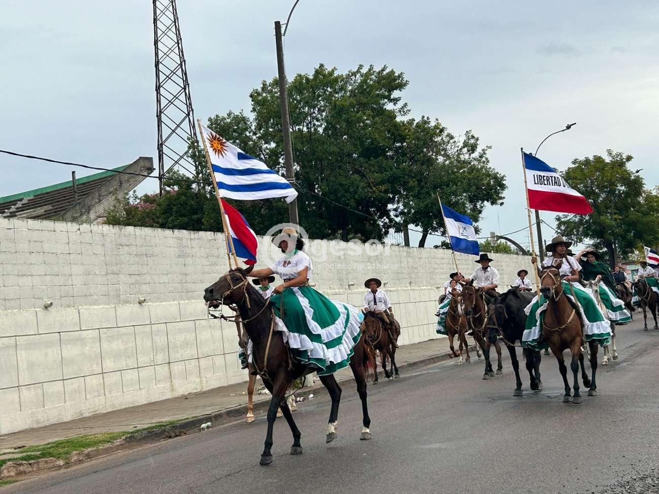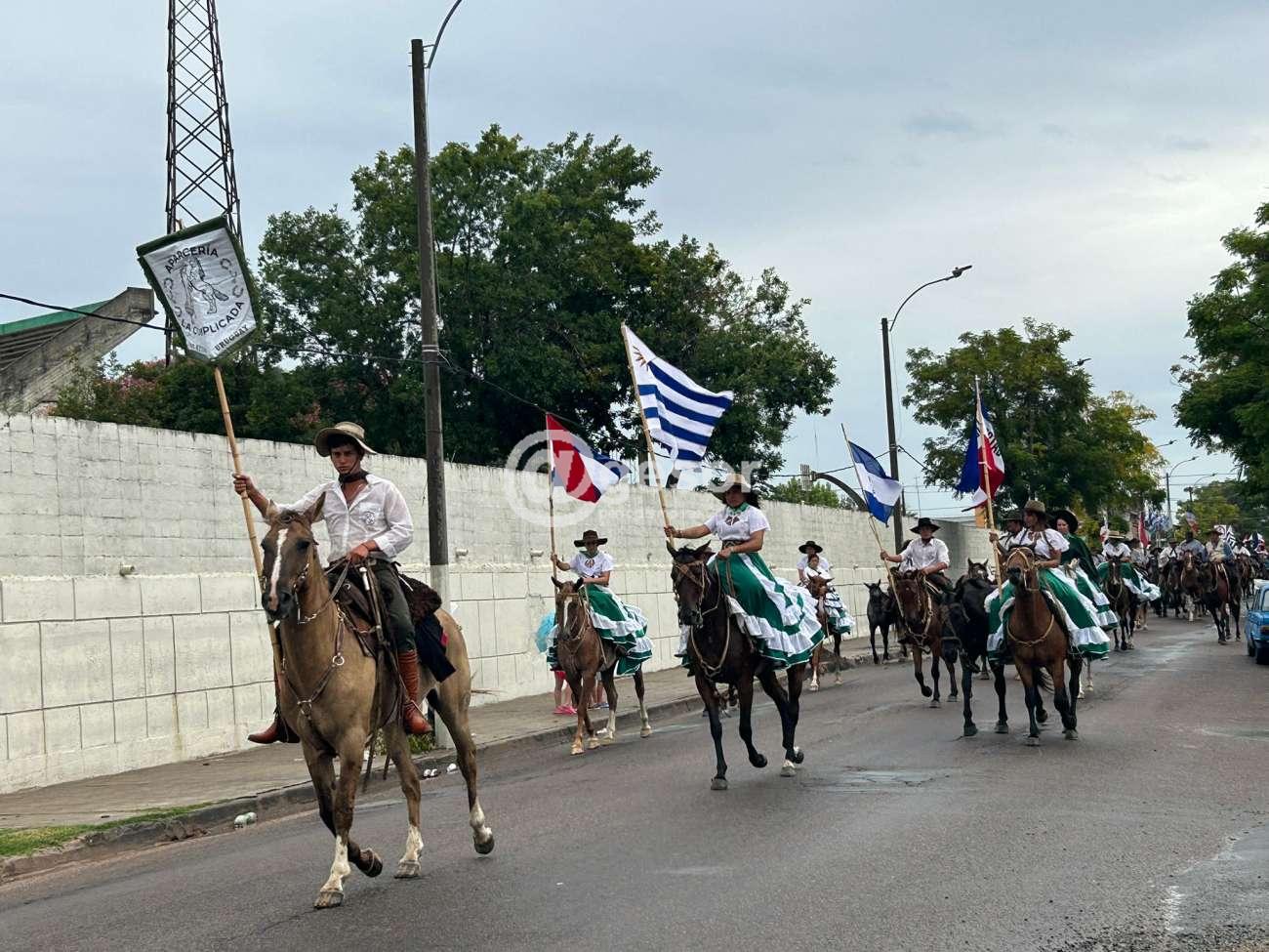 Con cientos de caballos y jinetes de decenas de aparcerías de diferentes puntos de la región y en un desfile encabezado por abanderados y una escolta perteneciente a la Guardia Republicana, quienes han participado de la marcha en todas sus etapas de la actual edición, que se inició el viernes con la cncentración en "La Tablada" en Dolores, desde allí el sábado temprano en la mañana se partió hacia Villa Soriano, este domingo se unió "La Histórica" con el parque de Admirable alarma en paraje Asencio y de allí a Mercedes.