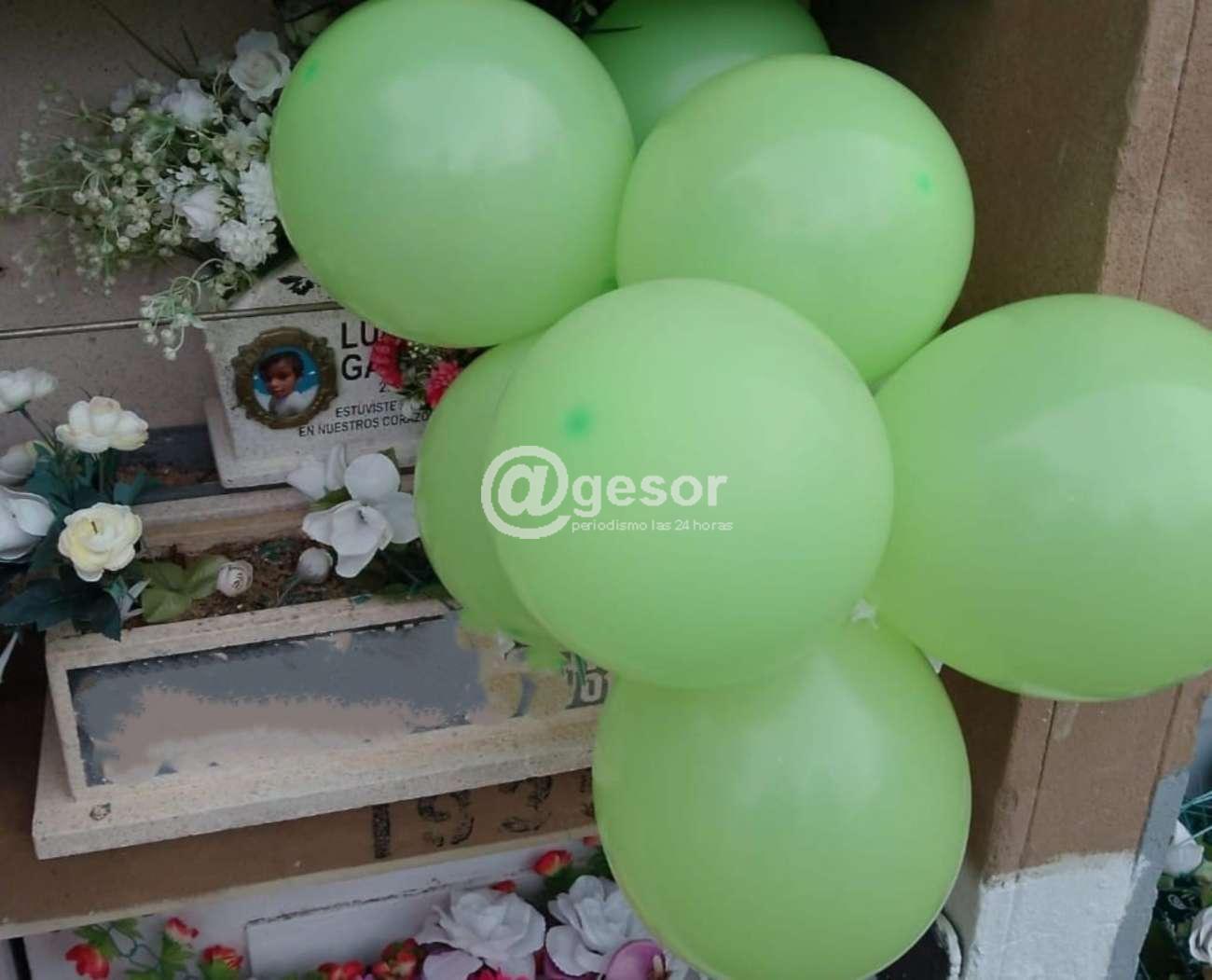 Hoy por la mañana Ana fue al cementerio y le llevó globos a su ángel.