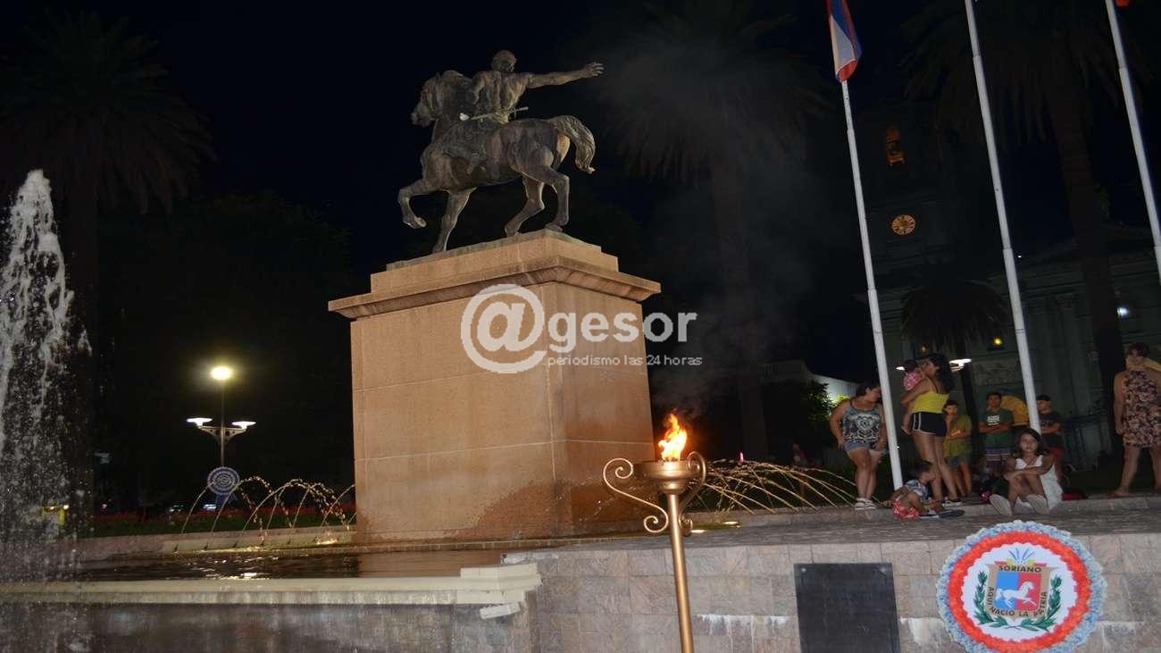 En plaza Independencia se realizó el acto central por  el  213°  aniversario del Grito de Asencio. Como  adelantáramos previamente se realizó una  ceremonia en el parque de la Admirable Alarma,  lugar histórico donde  se desarrollaron los hechos de  1811. La llama votiva salió de  ese lugar acompañada de una columna gaucha para emprender viaje a Mercedes.  Los gauchos  circularon por ruta  95 y 21 para  ingresar a la capital departamental por bulevar Viera y Benavídez , siguiendo por  28 de febrero hasta Careaga, llegando  a Plaza Independencia  donde se rindió homenaje al gaucho de Asencio.