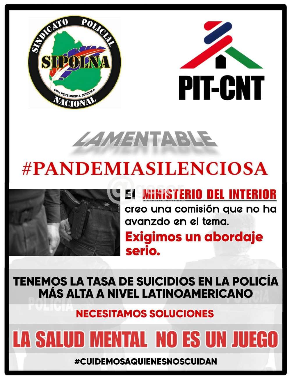 SIPOLNA (Sindicato Policial Nacional) informa que el Ministerio del Interior creó una comisión que no ha avanzado en el tema de prevención del suicidio. Exigimos un abordaje serio.