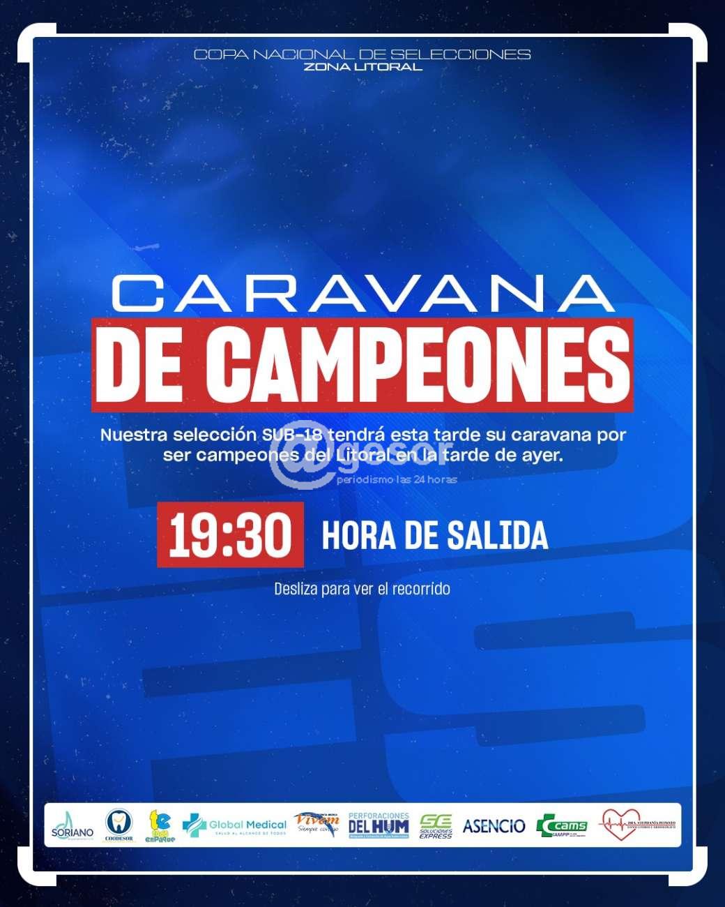 La Caravana saldrá a las 19,30 horas del Estadio Luis Koster, para recorrer la ciudad. Los campeones visitarán todas las sedes de los clubes que integran la Liga de Fútbol.