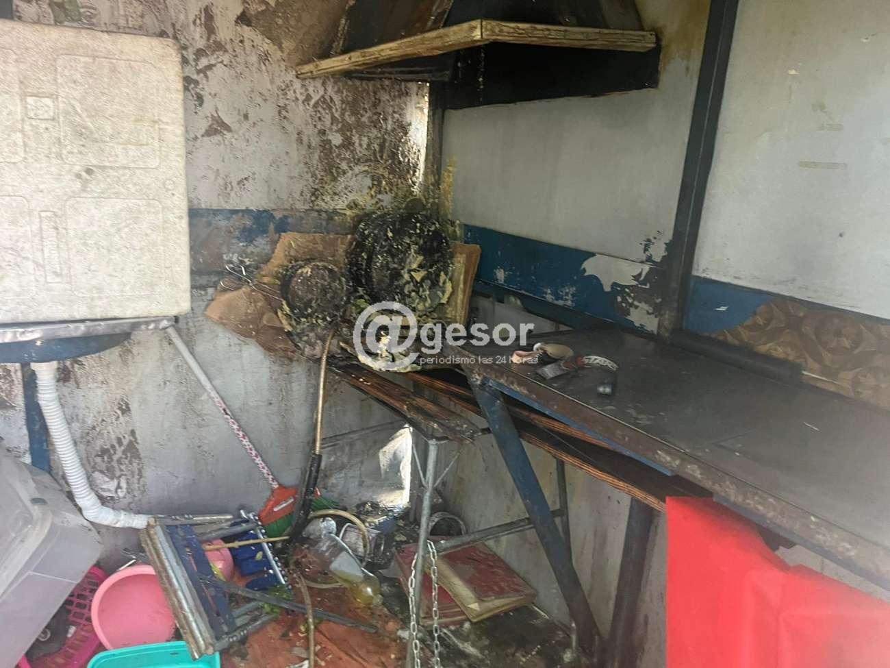 Así quedó el carrito de un vendedor de tortas fritas en la Rambla de Mercedes, prácticamente tuvo pérdidas totales.