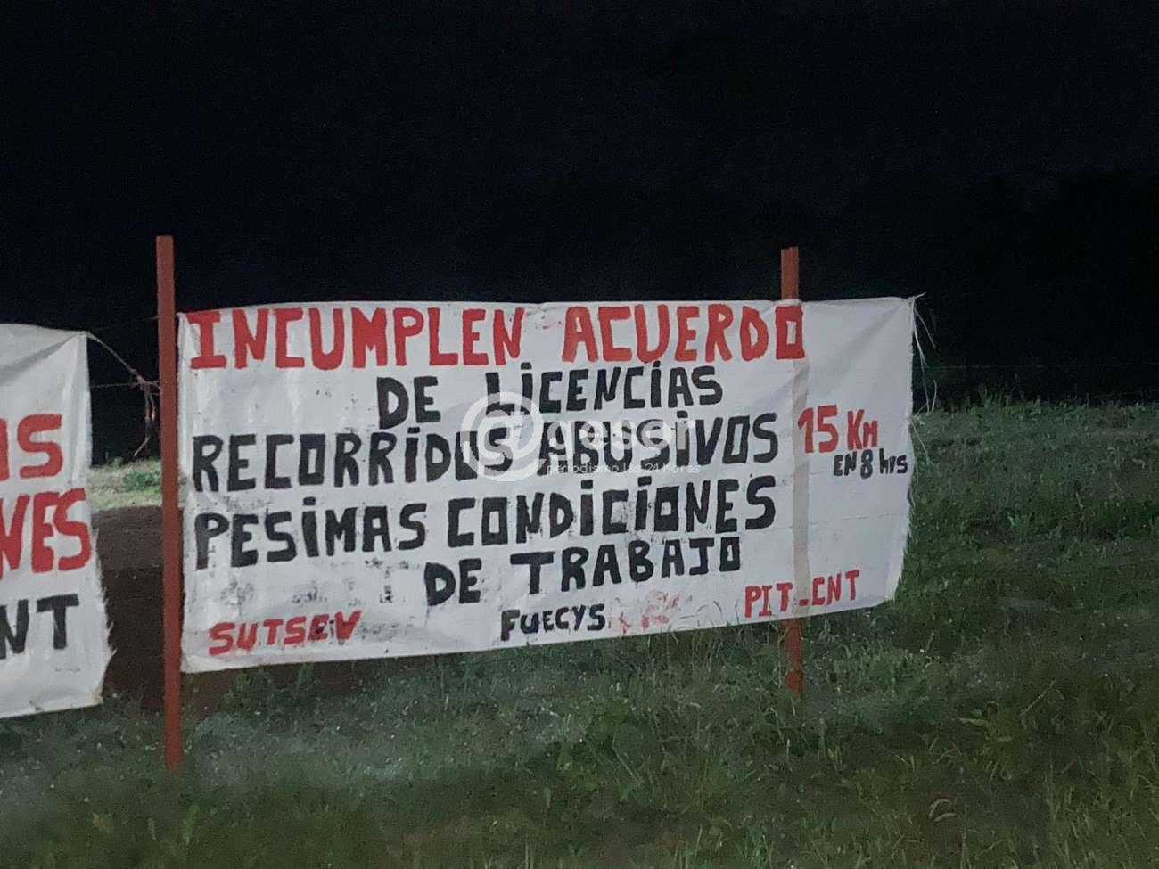 O también "Incumplen acuerdo: de licencias, recorridos abusivos 15 km en 8 horas, pésimas condiciones de trabajo". SUTSEV - FUECyS - PIT CNT.
