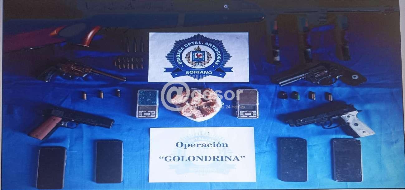 Tras tres meses de investigación, la Brigada Departamental Antidrogas y la Fiscalía Letrada de Primer turno de la ciudad de Mercedes llevaron a cabo la "Operación Golondrina". En cuatro allanamientos, se capturaron a cuatro individuos y se decomisaron armas, drogas, dinero, teléfonos celulares, balanzas de precisión y vehículos.