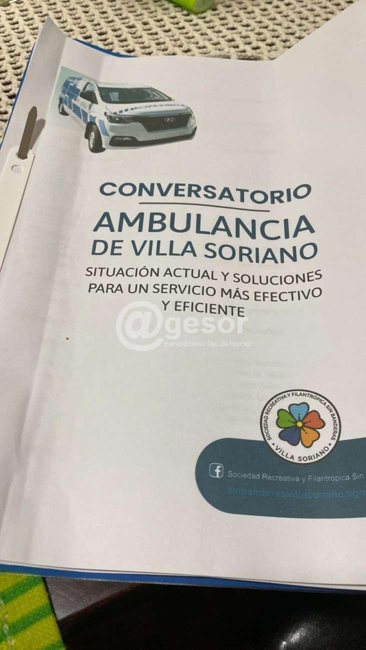 A instancias de la Sociedad Recreativa y Filantrópica “Sin Banderas”, se llevó a cabo en Villa Soriano, un conversatorio cuyo tema fue Una ambulancia en Villa Soriano, la situación actual y las soluciones para que se preste un servicio eficiente.