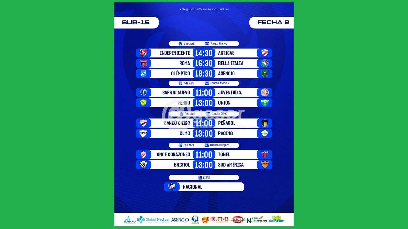 Se reunió el Consejo de la Liga Departamental de Fútbol de Mercedes bajo la presidencia del Dr. Pablo Marrero, estableciéndose  que la segunda fecha del torneo de sub 15  tendrá los siguientes partidos. El día sábado, Independiente vs Artigas a la hora 14 y 30, Roma vs Bella Italia hora 16 y 30 y Olímpico vs Asencio  a las 18 y 30 estos partidos van en Parque Ramos.