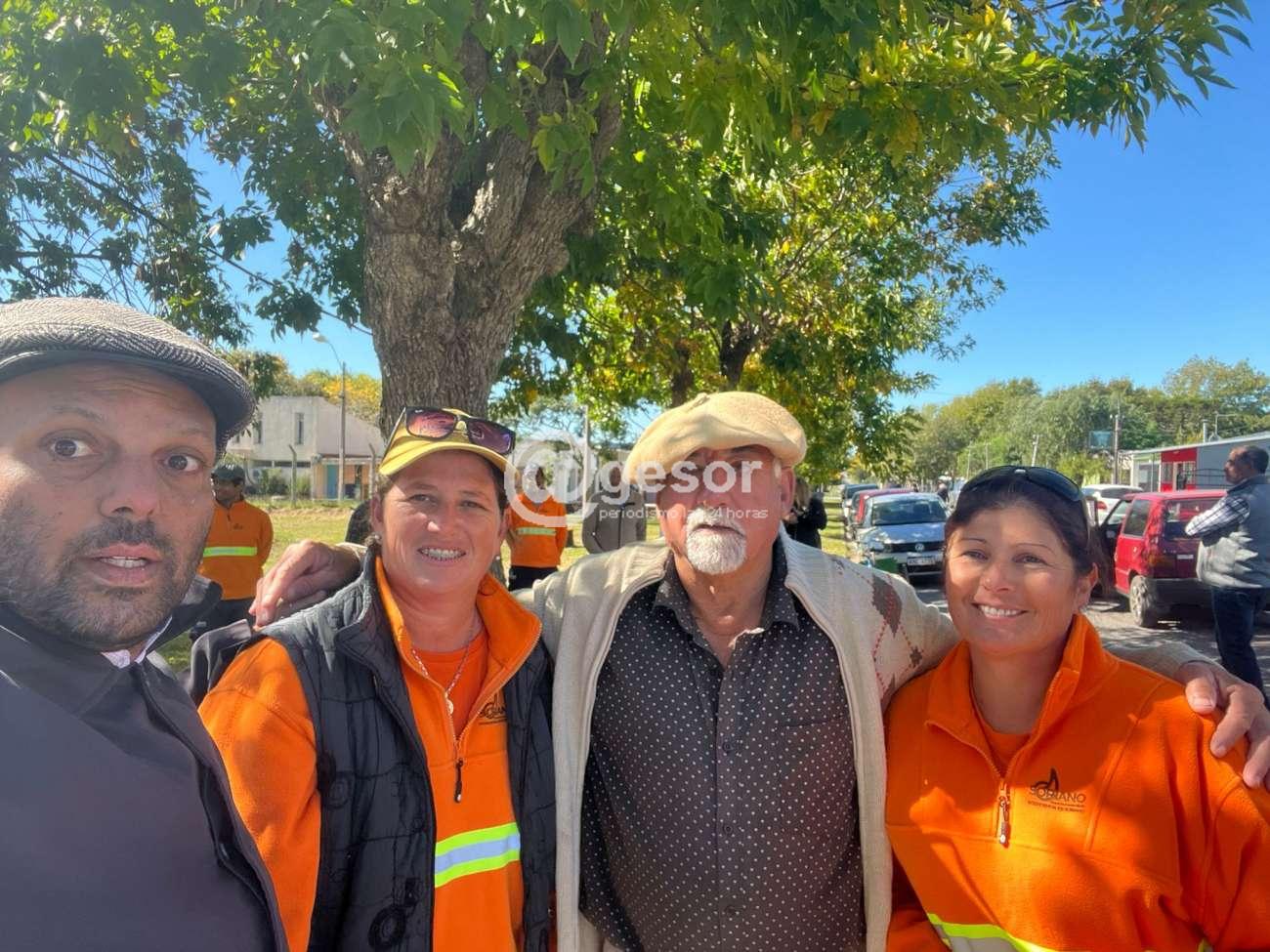 Roberto Gutierrez en representación de la comisión pro saneamiento de Risso que colaboró con 2600 dólares entregó una de las llaves a las conductoras designadas por la Intendencia".