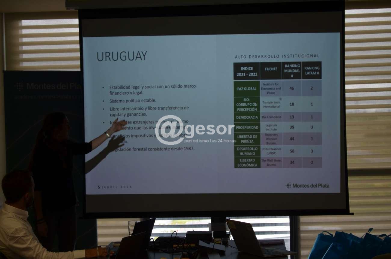 Después de  detallar otros aspectos de lo que hacen a la generación de empleo Carolina Moreira se refirió a  "la Academia Montes del Plata, que es una iniciativa maravillosa, que hace un par de años que estamos trabajando, en lo que es empleabilidad de nuestras personas, y  los hijos de productores asociados en el programa de alianzas. Les hemos ofrecido a los hijos de productores que puedan tener su primera experiencia laboral acá en Montes del Plata, en las diferentes ramas, así como también a los empleados nuestros, que sus hijos que ya están en años avanzados en su carrera terciaria, o en sus primeros años posteriores a egresar, puedan tener su primera experiencia laboral"