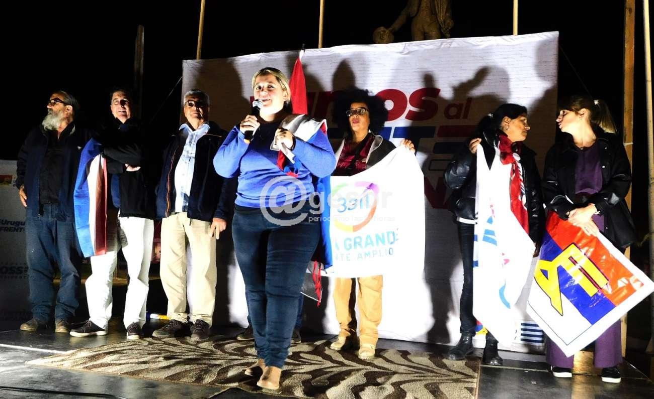 Yo lo estoy diciendo de manera diferente. Estoy hablando de la violencia. ¿Por qué hay más violencia? ¿Es por una sola razón? ¿Hay una sola forma de resolverlo? ¿No será que tenemos que hacer unas cuantas cosas al mismo tiempo? ¿De verdad? ¿Y articular de verdad una nueva... Esto es mío, no es de prueba. ¿Una nueva gobernanza en la seguridad? ¿No será que tenemos que pensar que hay muchísimas cosas conectadas que nos están trastocando un poco la realidad? ¿O vamos a aceptar que dos personas se maten por una discusión por un perro y un gato? ¿No hay algo que está disonante en esa realidad? Bueno, hay que volver acá a lo que nosotros escribimos y seguir elaborando, seguir conversando para irlo bajando a tierra, para irnos preparando y no aceptar, no naturalizar la desgracia humana, la tristeza. Porque Uruguay, nuestro país es un país... Los países son poderosos en el mundo principalmente por dos motivos o porque tienen muchísima población India, Estados Unidos, China o porque tienen muchísima riqueza o una combinación de ambas cosas o una... Nosotros no aplicamos muy bien en ninguna de las dos cosas pero sí aplicamos muy bien en una... Nosotros hemos protegido nuestra democracia la tenemos que seguir protegiendo y yo quisiera pensar que nuestro pueblo, todo nuestro pueblo no los frenteamplistas que todo nuestro pueblo a veces me lo pregunto, ¿será que nuestro pueblo se olvidó de aquello de que los más infelices sean los más privilegiados? Yo espero que no. Yo espero que no. Que lo que estaba haciendo Artigas con una reforma económica y tenía ese contenido social a pesar de todos los que quisieron borrar el pensamiento de Artigas borrarlo a él, borrar sus acciones, lo quisieron borrar yo quiero pensar que no lo lograron y que nosotros seguimos queriendo un país que meta para adelante, que produzca más pero donde los más infelices sean los más privilegiados queremos un país un poquito más igual, queremos un país que sea un refugio del humanismo, de la humanidad donde la gente sienta que la tratan bien y no que lo primero que hacen es gritarte, no cobrar al grito y eso puede ser un gran capital del Uruguay su seriedad, su prolijidad o sea, revertir los retrocesos que estamos viviendo en estos cinco años, volver a poner Uruguay al frente porque compañeras y compañeros lo vamos a volver a poner Uruguay al frente lo vamos a volver a poner, cada uno de nosotros conoce una porción de la realidad, juntos como decía Benedetti, somos mucho más que dos, juntos hacemos estas cosas, juntos cambiamos la matriz eléctrica, juntos hacemos el Ceibal, juntos cambiamos el sistema de salud, juntos permitimos que la universidad llegue a todo el interior, juntos generamos la UTEC, juntos le damos infraestructura a la educación, juntos dimos vuelta a la salud, eso hacemos por todo el Uruguay, por todo el Uruguay".