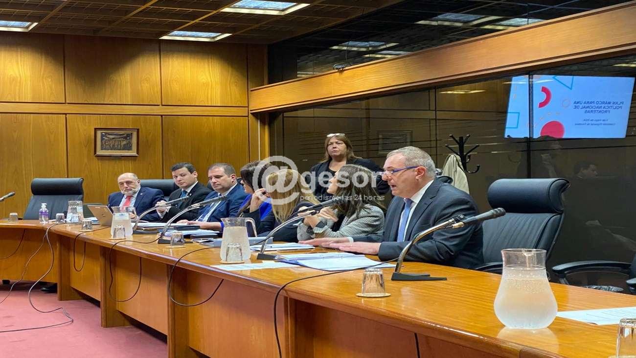 La Diputada Maria Fajardo, que asistió a la Sesión en su carácter de miembro integrante por ser Representante de un Departamento limítrofe con Argentina, informa que el Plan Nacional de Fronteras es uno de los Objetivos del  Plan Estratégico de Política Exterior que define: “elaborar, junto con las demás autoridades competentes nacionales y departamentales, Un plan nacional de desarrollo de la zona fronteriza, que contemple las particularidades de cada región, así como las percepciones e idiosincrasia de la población local, e integre aspectos culturales, sociales, económicos, educativos, de salud, entre otros, desde una perspectiva integral e integracionista respecto de los países vecinos, respondiendo a los desequilibrios de corto y mediano plazo de cada región".