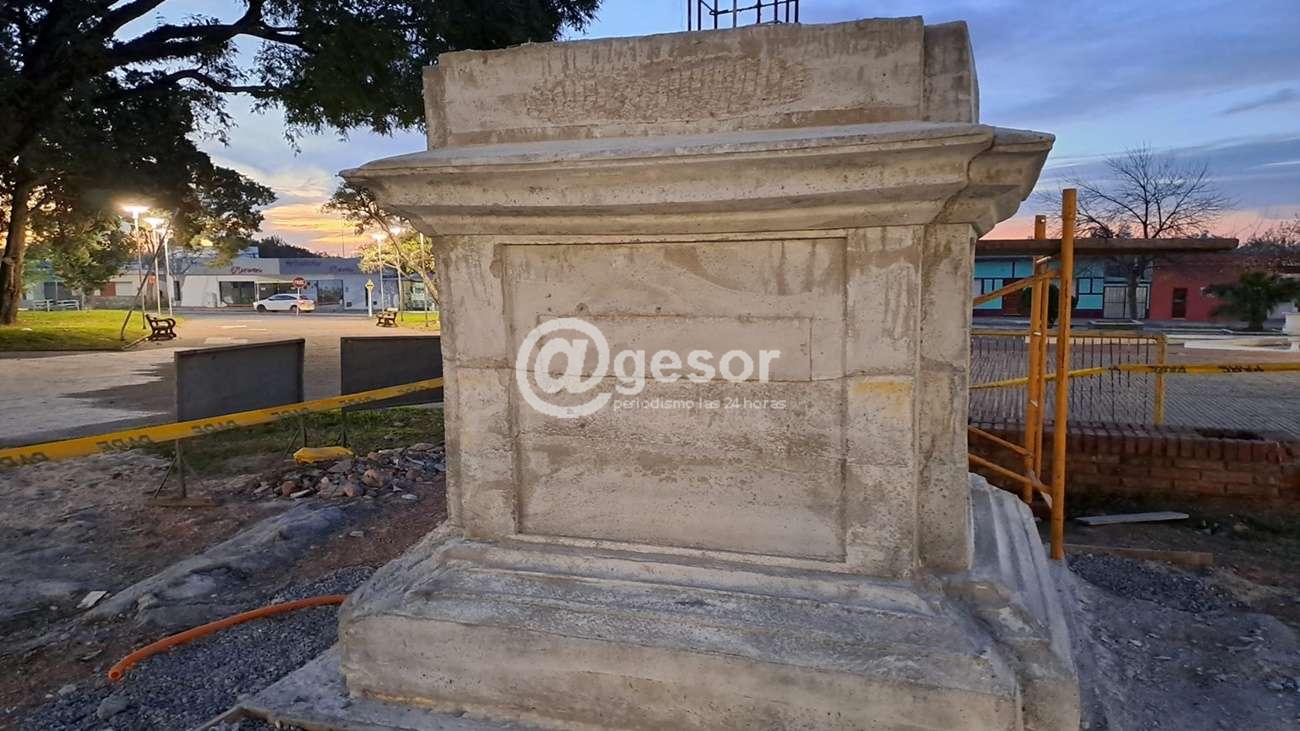 Los trabajos en el sector central de plaza “Rivera” de la ciudad de Mercedes, los realiza personal municipal bajo la supervisión del artista Federico Gauthier quien está a cargo de la confección tanto de la columna como de la estatua.