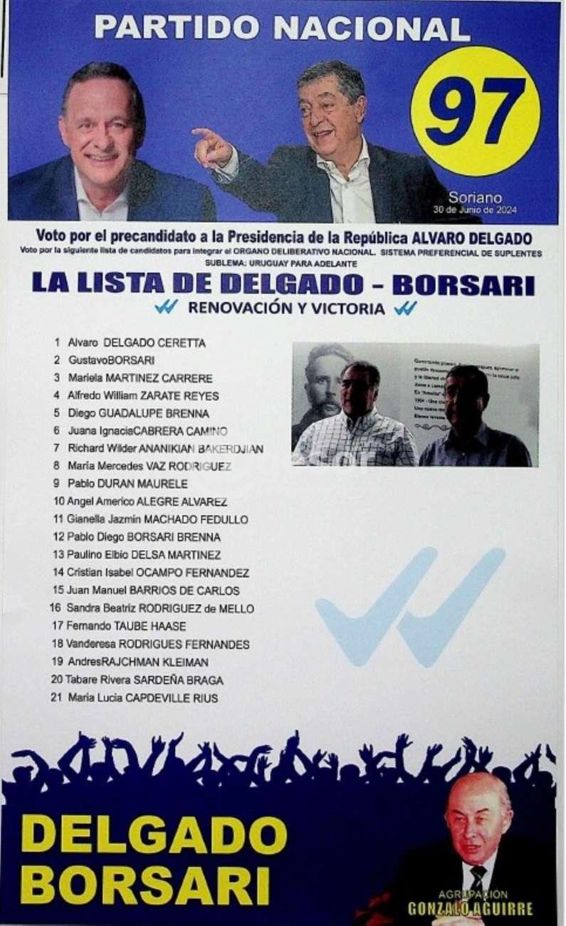 Las hojas 97 y 897 del Partido Nacional con Alvaro Delgado, Gustavo Borsari en lo nacional y Alfredo Zárate (foto) en lo departamental ya están confirmadas.