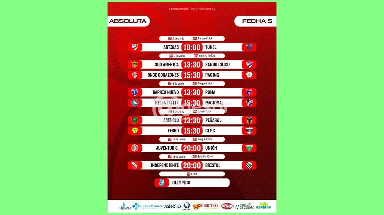 El día 12 de junio Juventud Soriano enfrenta a Unión, en partido que comenzará a las 20 horas. A su vez Independiente enfrenta a Bristol a la misma hora.