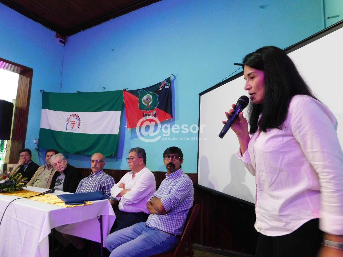 Entonces, un saludo grande, un abrazo grande, una emoción muy fuerte, recordar a Urián Correa que es nuestro mártir, que los compañeros seguramente en aquella huelga del 58, de tres meses acompañaron acá desde Mercedes, en mi caso, que trabajo en Ipusa desde hace 38 años, me quedo con la historia de los viejos compañeros que me la contaron, es una emoción muy grande.