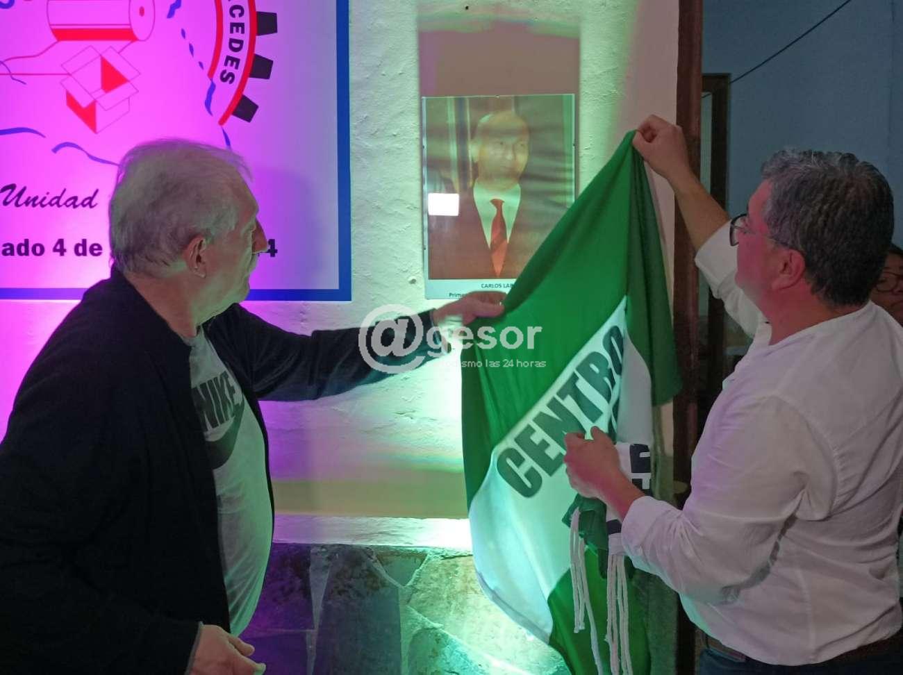 Finalmente Zoilo Viera y su hermana Nelly Viera, fueron invitados a descubrir un cuadro con la fotografía de su padre Cyrano Viera quien fuera Presidente del Centro Papelero en instancias trascendentes.