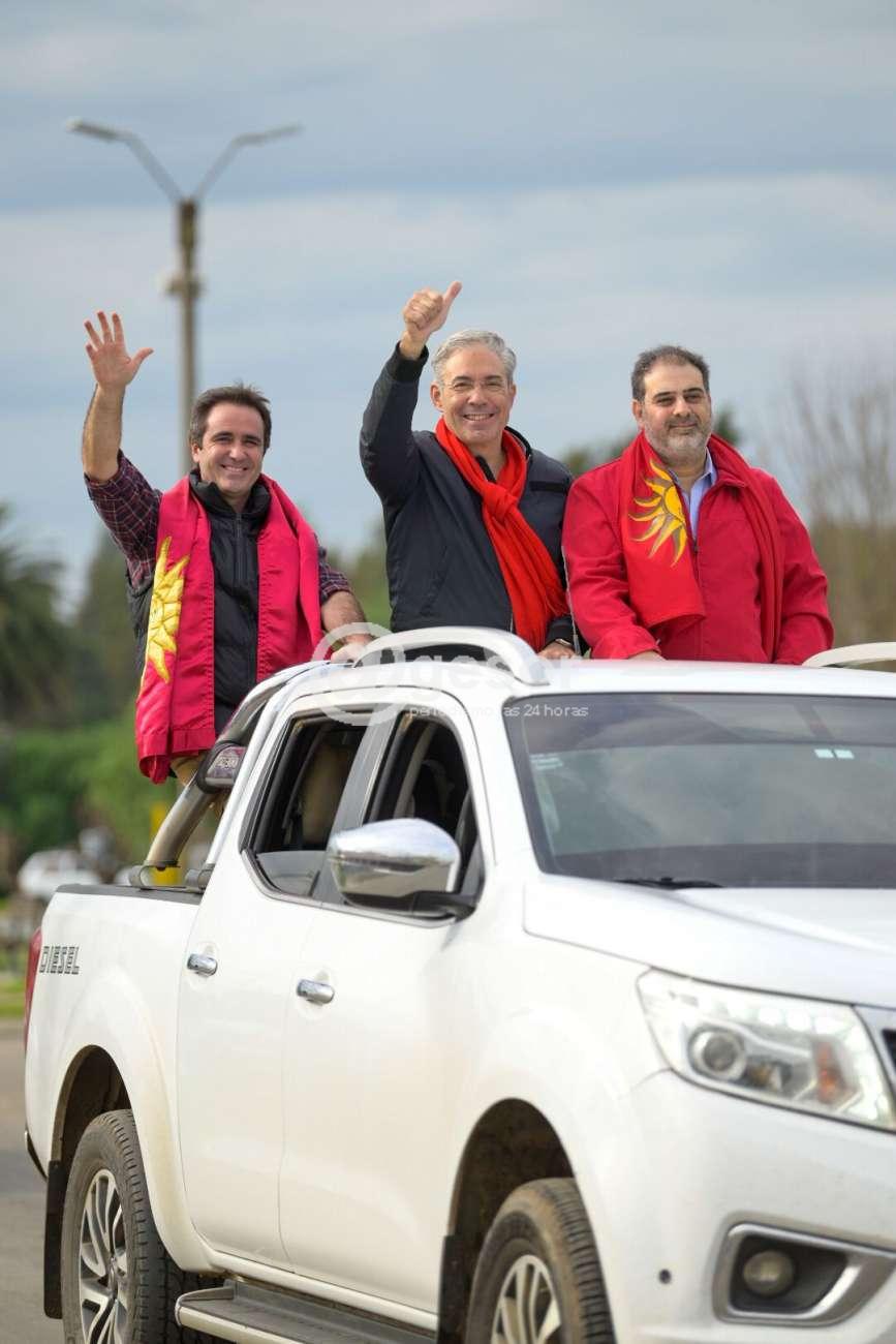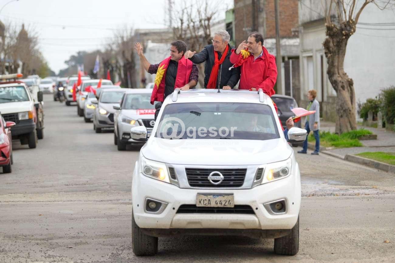La caravana partió rumbo a Santa Catalina donde aguardaban allí sobre la Ruta 2 un grupo de militantes que saludaron al ritmo de las bocinas. Se visitó el Club de la 6 y se continuó rumbo a Rodó, se recorrió Risso y Egaña. La parada fue en el “Barracas” donde un grupo de parroquianos hacían el asadito del domingo en el medio tanque, y luego de unos trucos, la caravana reinició su marcha.