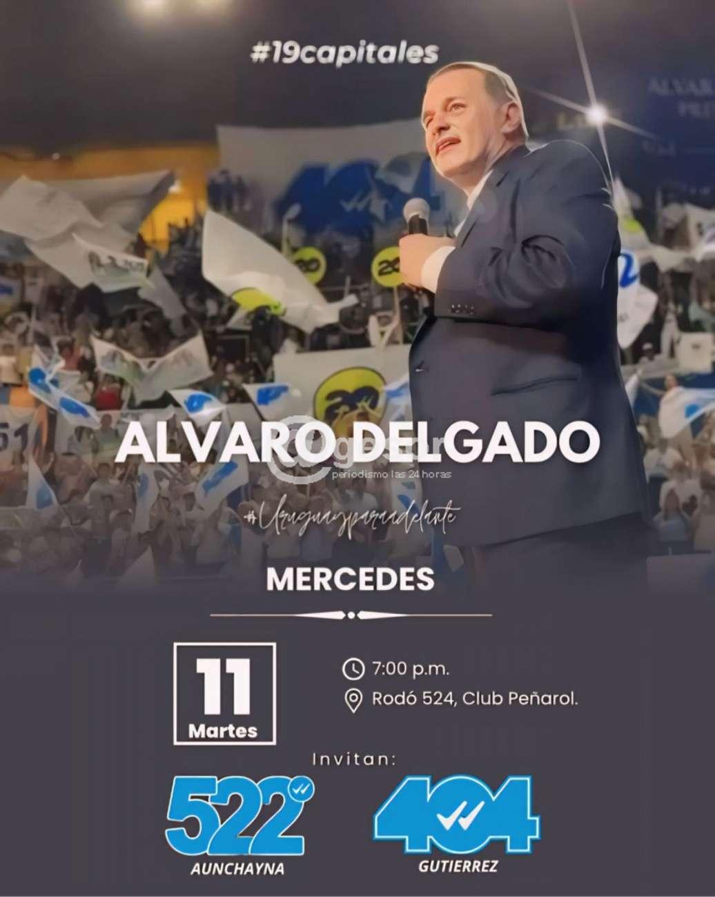 Alvaro Delgado en Mercedes, Uruguay para Adelante!!! Este martes 11 a las 19.00 horas en Club Peñarol en Rodó 524, invitan las Listas 404 y 522 con Guillermo Gutiérrez y Carlos Aunchayna respectivamente