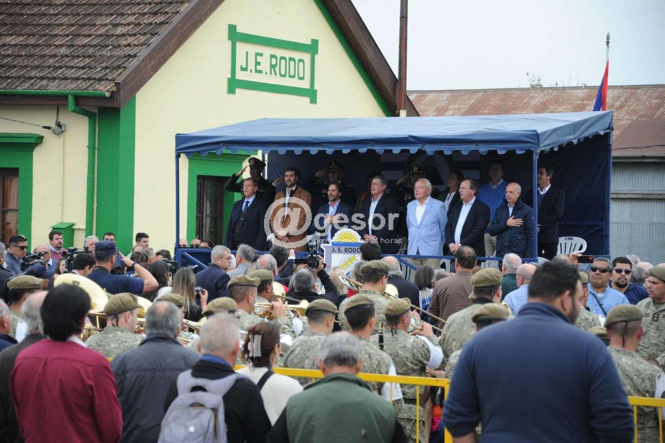 Tras la entonación de estrofas del himno nacional, se efectuó una reseña histórica y las autoridades presentes descubrieron una placa bajo el busto de Rodó. Luego se llevó a cabo un desfile civil, integrado por escolares, liceales y representantes de clubes sociales, deportivos y del Club de Leones de la zona, entre otros. A continuación, se realizó un desfile militar y de caballería gaucha, en el que participaron unas 40 organizaciones.
