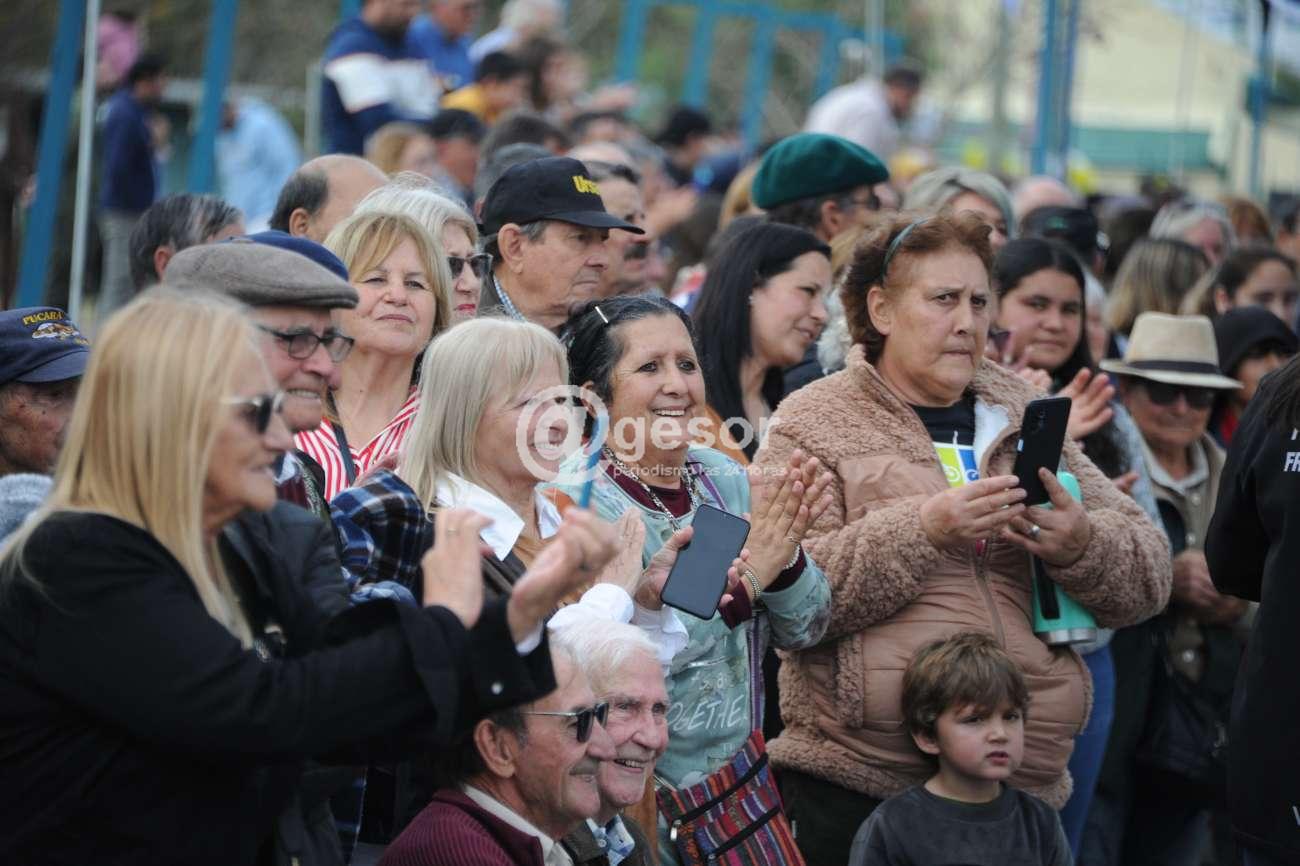El acto incluyó una suelta de palomas. Además, la comisión organizadora le entregó al presidente Lacalle Pou obras de arte en agradecimiento por su presencia.