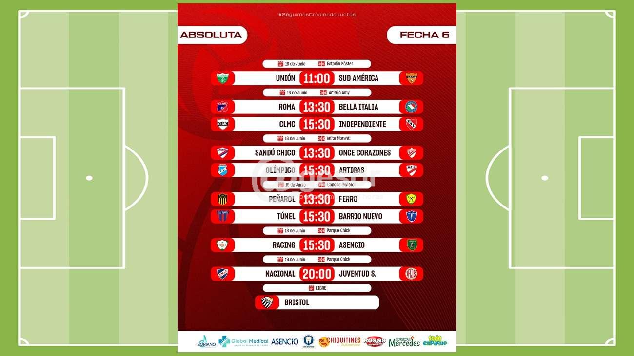 El miércoles 19 de junio, en el Chick, Nacional recibe a Juventud teniendo libre Bristol.