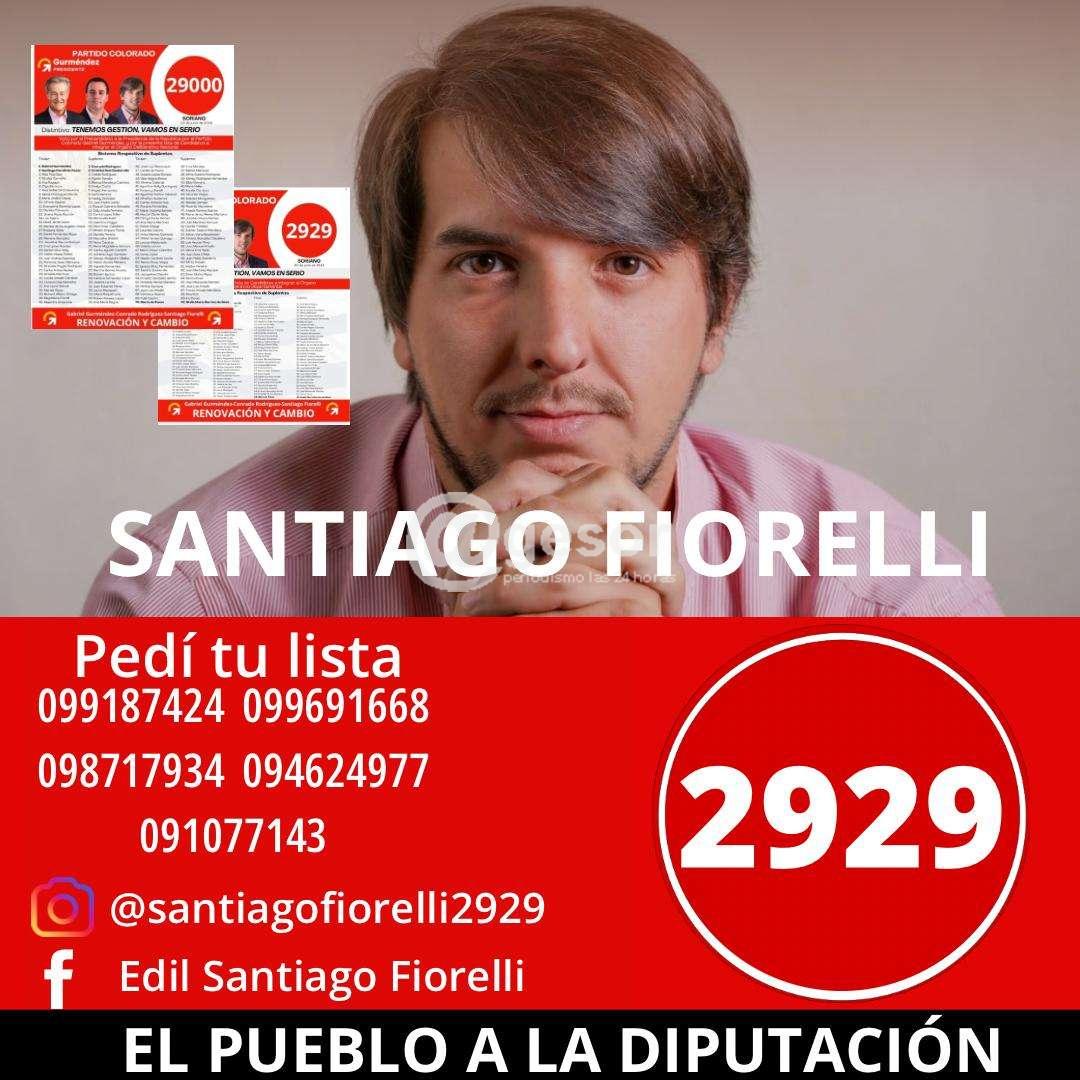 SANTIAGO FIORELLI: EL PUEBLO A LA DIPUTACIÓN, en las Internas del Partido Colorado, en Soriano, este 30 de junio, junto a Gabriel Gurméndez a la presidencia, votalos en las Listas 2929 y 29000 respectivamente.