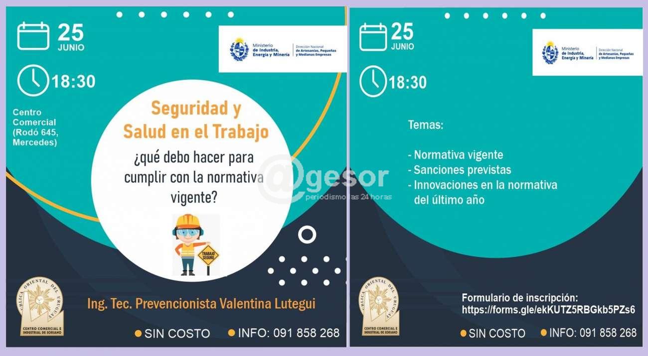 El Centro Comercial e Industrial de Soriano y Dinapyme los invita a participar del Taller Seguridad y Salud en el trabajo ¿qué debo hacer para cumplir con la normativa?