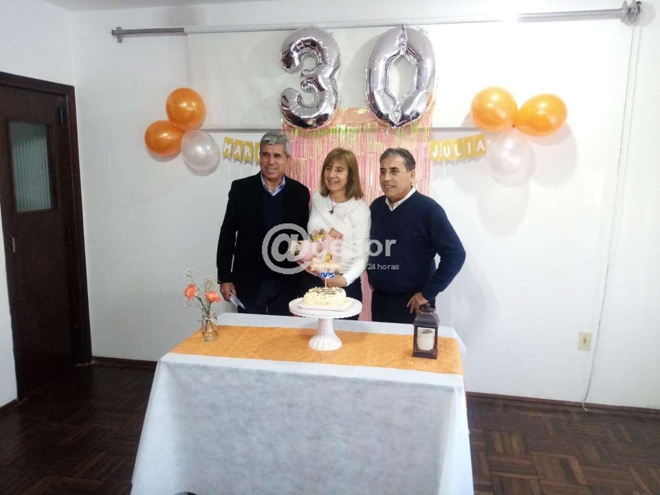 En la actividad cumplida en la sede de Mercedes una de las homenajeadas por María Julia Gavarone, quien cumplió 30 años de trabajo en BPS.