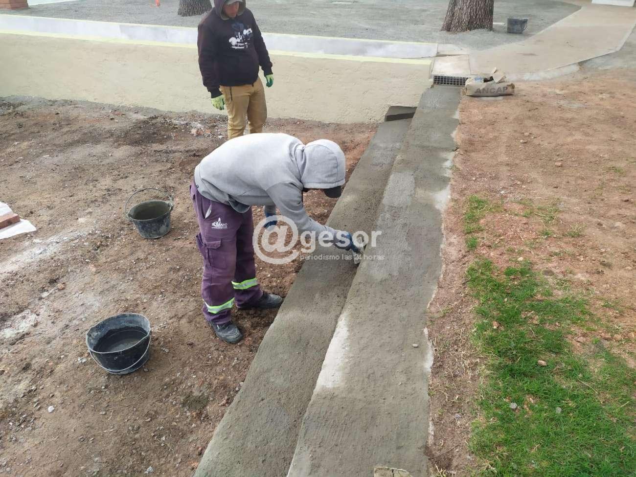 Se prepara el nuevo sistema de iluminación, por lo que se colocan columnas de 4 m. de altura para los senderos y los sectores con mesas y asientos.