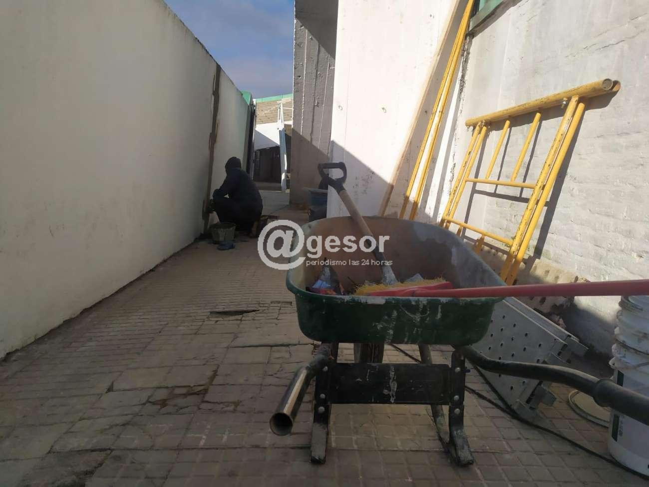 Las obras que se están llevando adelante consisten en hidrolavado y reparación de fachada por calle Varela, pintura exterior de fachada y colocación de letras corpóreas, reparación en las barandas, muros y cerco perimetral.
