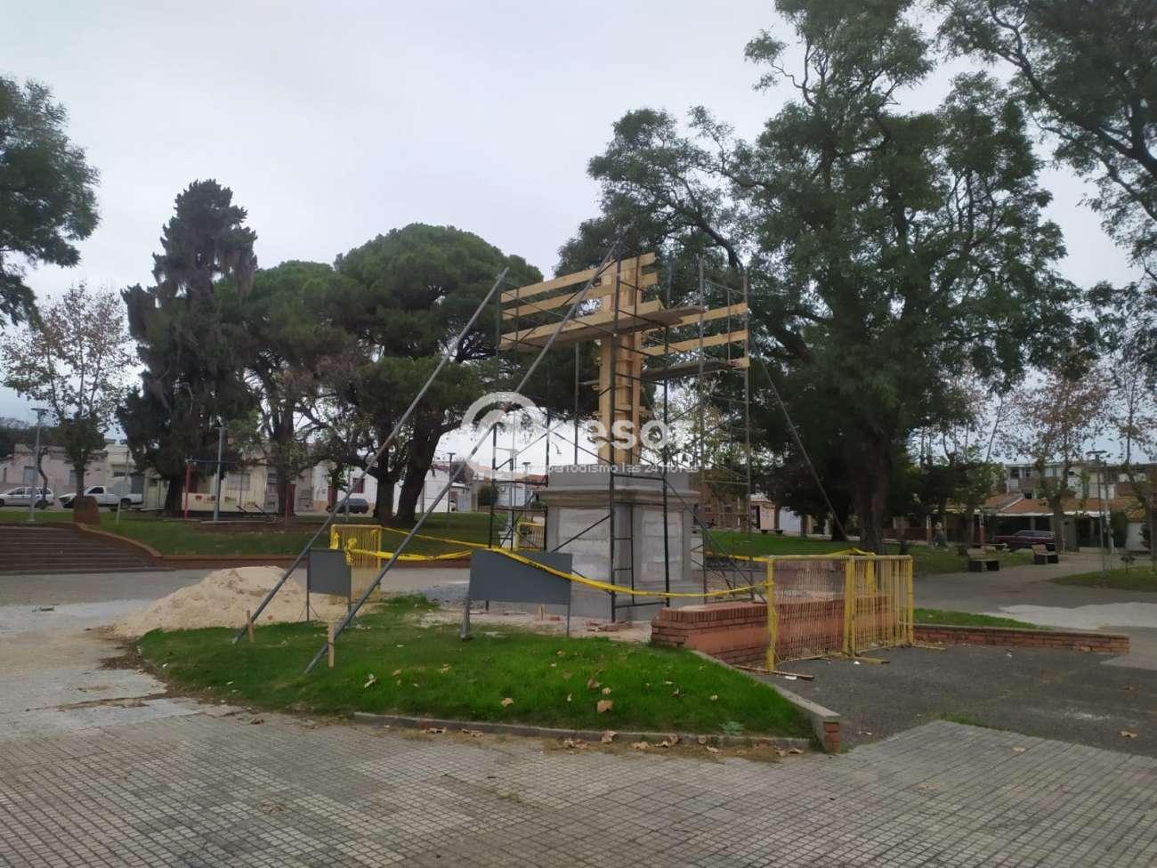 También se dan retoques en el basamento que va a contener las placas de mármol originales que estaban situadas al pie de la que resultó destruida por un rayo en agosto de 2020.