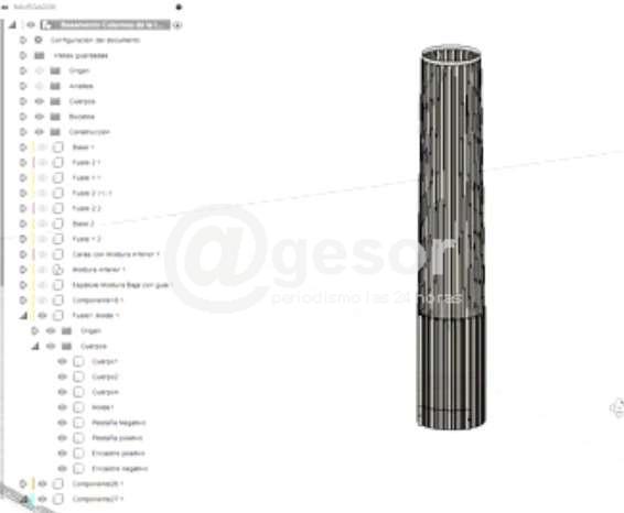 Posteriormente ese núcleo será rodeado con moldes que también serán llenados con hormigón, y que le darán a toda la columna el relieve correspondiente.