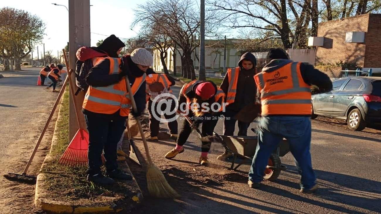 Luego de intervenir en la rambla, ahora las tareas se van extendiendo hacia el interior del parque "Guernika", donde se trabaja por parte de distintas áreas der la comuna, así como con beneficiarios del programa "Oportunidad Laboral".