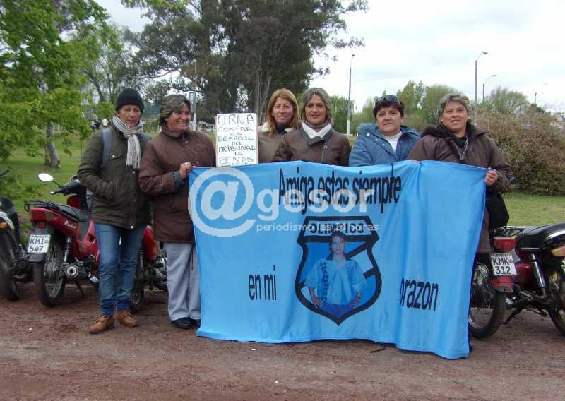 Las amigas y simpatizantes de la recordada joven, ubicadas este domingo, en el acceso al parque Bristol al tiempo que recaudaban la colaboración, como lo viene haciendo desde la novena fecha del torneo Apertura en los escenarios donde juega Olímpico, -por la pena que rige y que hemos informado con anterioridad- exhibían una bandera con la imagen de la extinta Cecilia Pereira”.