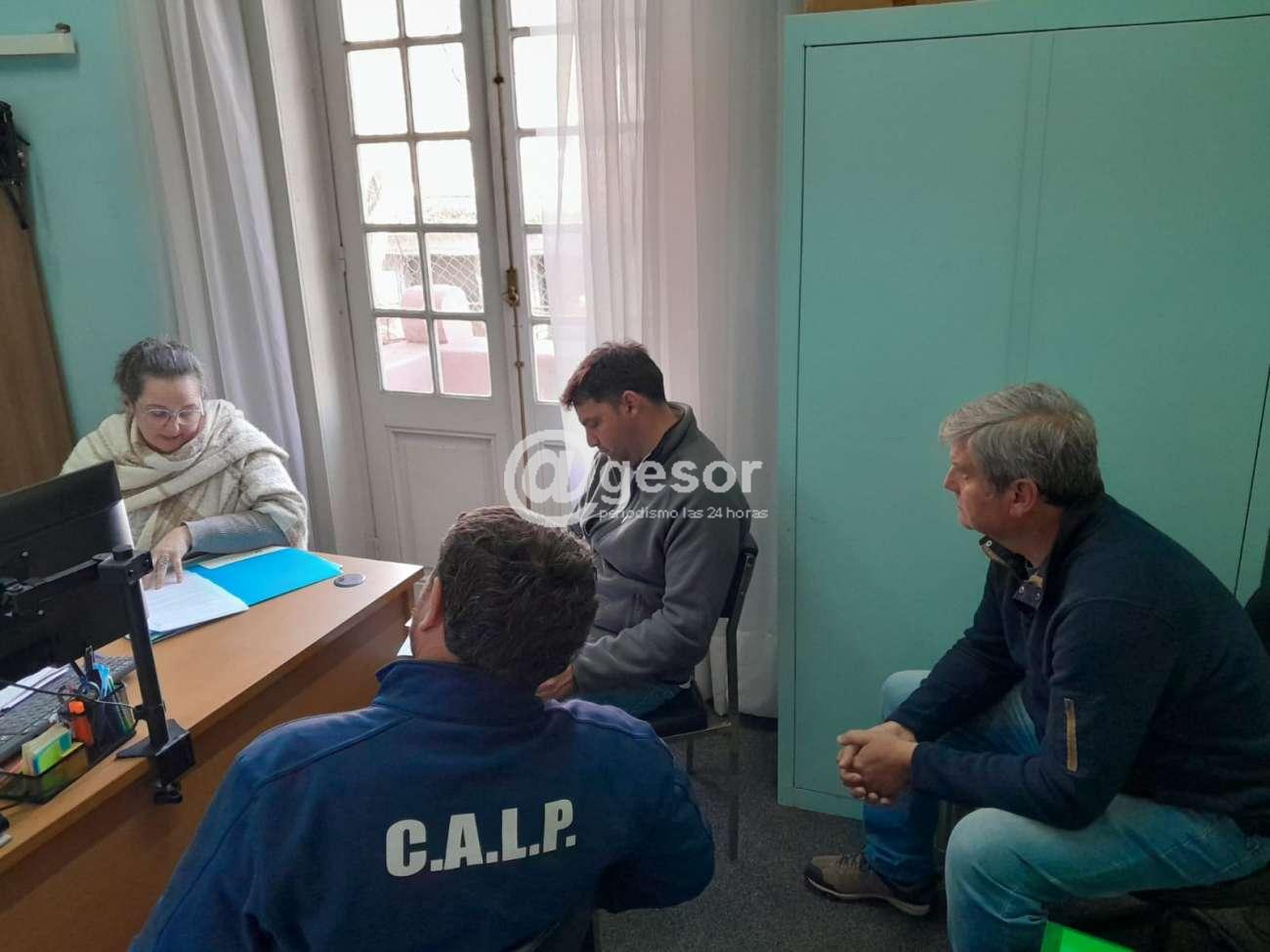 El presidente de Libertad de Palmitas, Álvaro Laco, Secretario Edward Rodríguez y Gerente Deportivo Mauricio Gauthier concurrieron a las oficinas de OFI para la firma de un convenio de obras en su sede social.