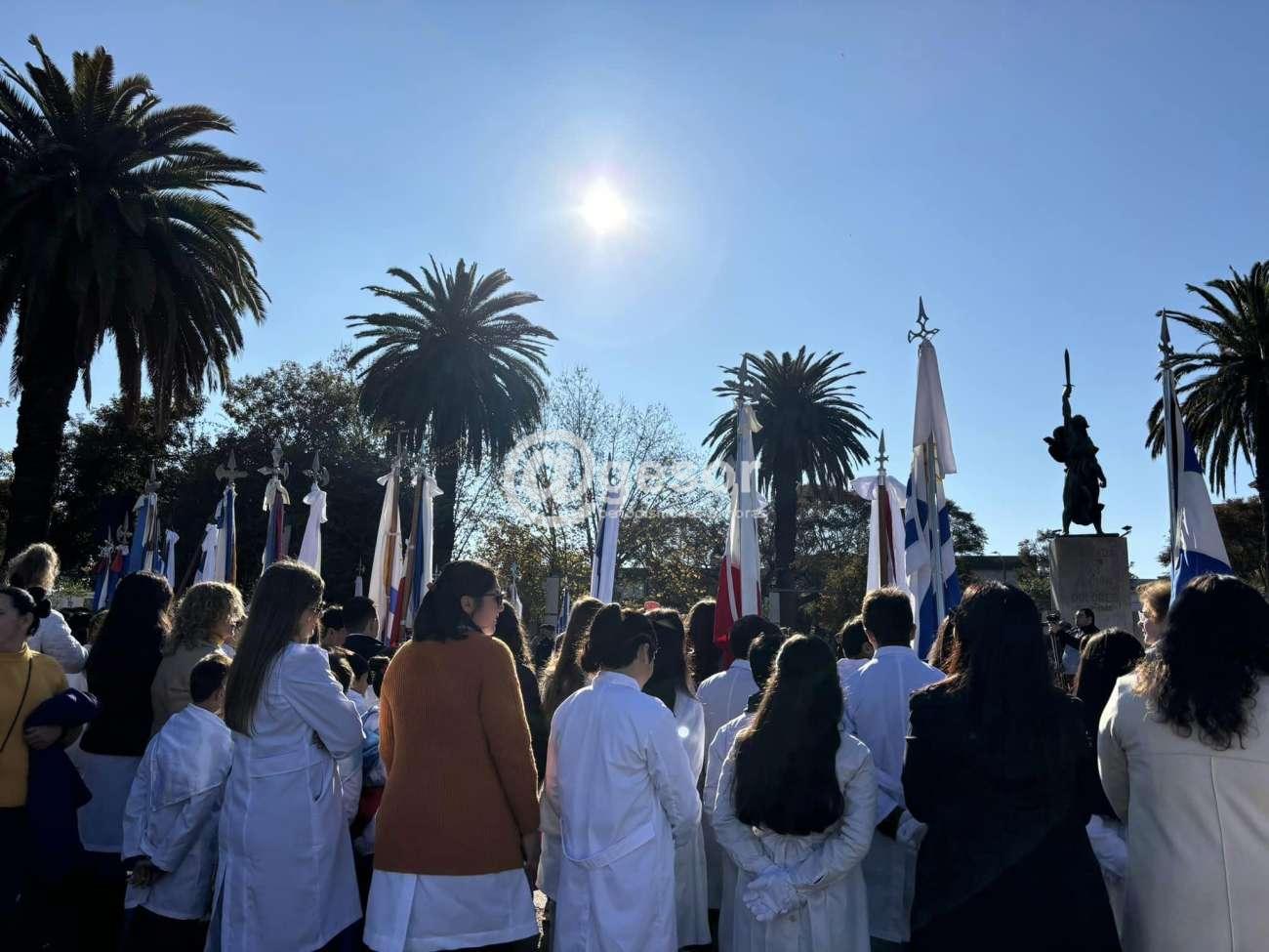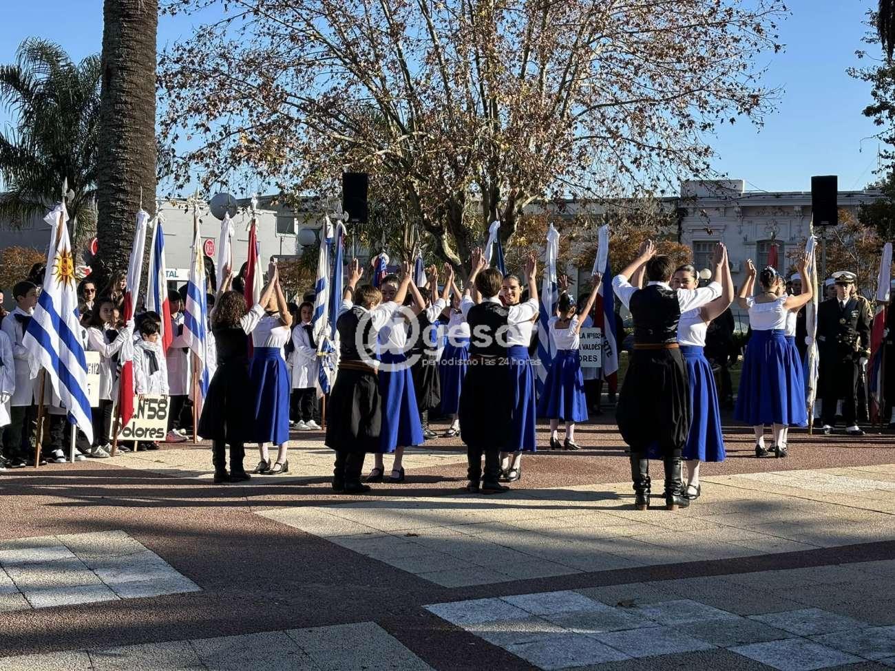 Comenzará con las estrofas del Himno Nacional, luego seguió con la parte oratoria a cargo de la Mtra. Ana Mariela Montesano, en representación de la Inspección Departamental de Educación Inicial y Primaria dando paso luego a la colocación de una ofrenda floral al pie del monumento que recuerda la Acción de Dolores.