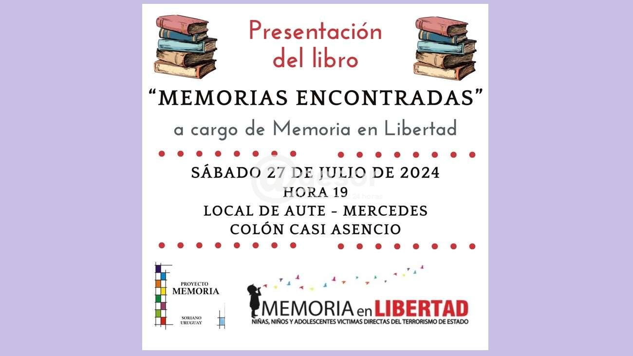 Este sábado 27 de junlio se presentará el libro "Memorias encontradas", una actividad organizada por la Comisión Memoria, Justicia, y contra la impunidad de Soriano y Memoria en liberdad.
