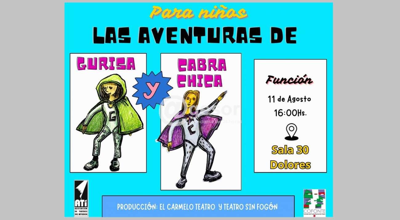 En Sala 30 de Dolores El Carmelo Teatroy Teatro Sin Fogón presentan la obra "Las aventuras de Gurisa y Cabra chica". Una obra teatral paraa niños que cuenta con el auspicio de la Asociación de Teatros del Interior (ATI) y Cofonte.