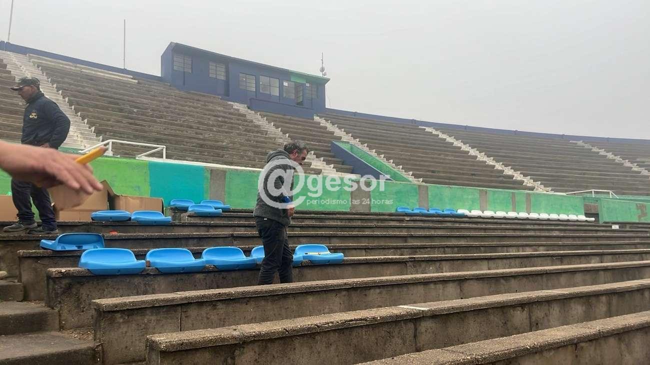 Para ello llegaron técnicos de la empresa que ganó la licitación correspondiente, quienes prueban las butacas en la estructura de la tribuna, y asesoran a los funcionarios municipales que trabajan en las obras de remodelación de nuestro principal escenario deportivo.