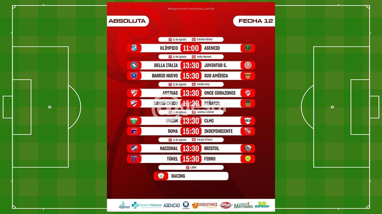 La tabla está encabezada por Olímpico con 26 puntos, Túnel 24 puntos, Racing 22 puntos, Peñarol 21 puntos, Independiente 19 puntos, Barrio Nuevo 19 puntos, Juventud 16 puntos, Once Corazones 16 puntos, Asencio 15 puntos, CLMC 15 puntos , Nacional 14 puntos, Sud América 14 puntos, Artigas 13 puntos, Bristol 12 puntos, Bella Italia 9 puntos, Roma 7 puntos, Sandú 5 puntos, Unión 2 puntos y Ferro 1 punto.